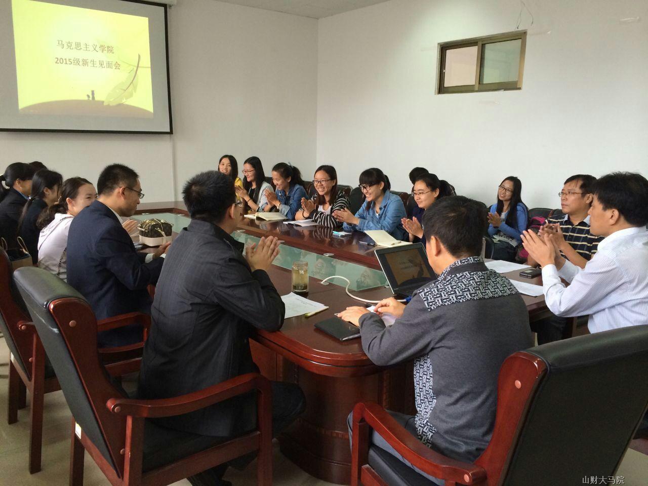 9月11日上午,海角视频 举行2015级研究生见面会。院长沈大光、党委书记郄捍烈、学院教授委员会主任委员毛玉美、院长助理张高臣出席见面会。见面会由院长助理赵付科主持。
