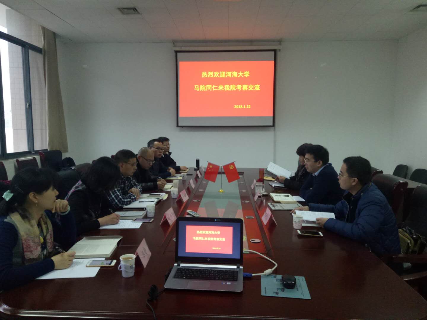 1月22日上午,河海大学海角视频 单连春副院长一行6人来到海角视频 考察交流。副院长赵付科、毛玉美教授、王利文老师等参加了交流会。