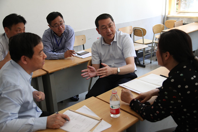 上午9点30分许,关志鸥与校党委书记王邵军、校长赵忠秀等进行了座谈。王邵军汇报了学校自2011年合并组建以来的发展建设情况,当听到学校在学科建设、人才队伍建设、思想政治工作、思政课教学改革、主校区建设等方面取得的成绩时,关志鸥给予充分肯定。他说,学校坚持和加强党对高校的全面领导,坚持走内涵式发展道路,为山东经济社会发展提供了有力的智力支持和人才支撑。今后,要紧密对接山东经济社会发展需求,努力为山东新旧动能转换重大工程、乡村振兴战略等作出新的更大的贡献。