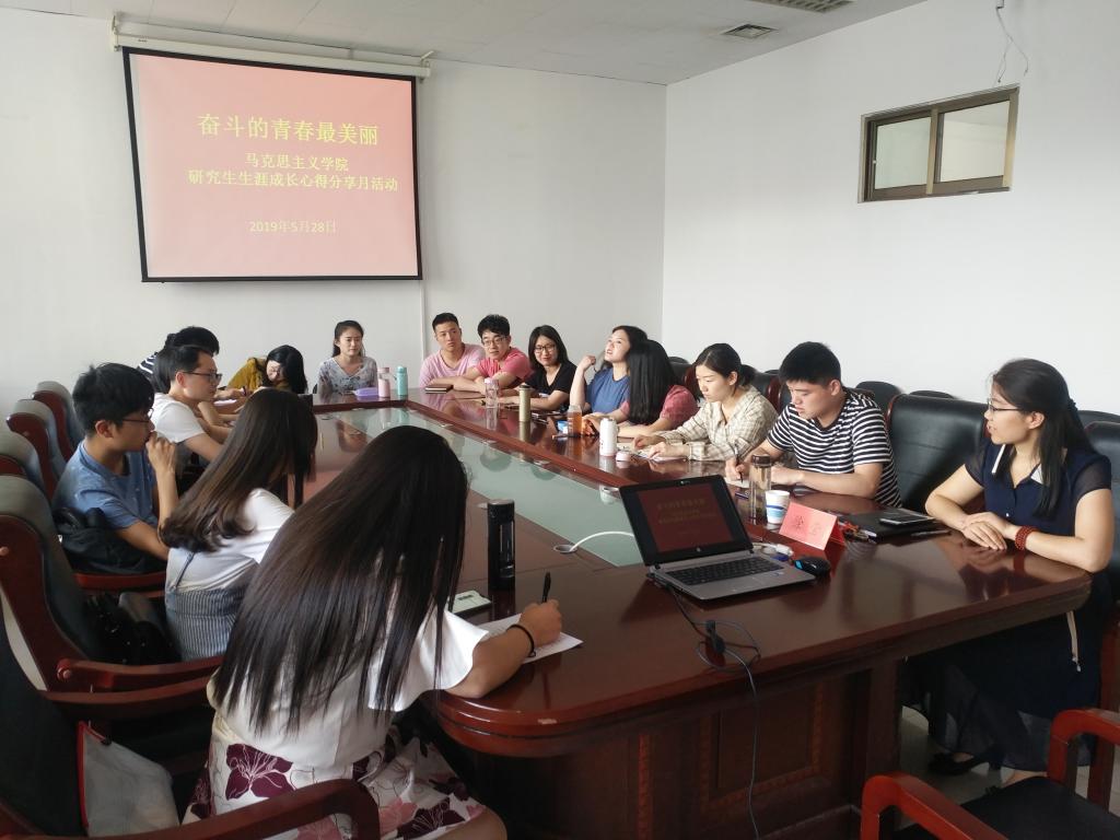 2019年5月28日,马克思主义举办题为“奋斗的青春最美丽”的研究生生涯成长心得分享活动,活动以座谈方式进行,由徐莹副教授主持,2019届毕业生代表王小迪、李东格、刘震宇为研一、研二的同学分享了研究生期间学习深造、论文写作、工作求职等方面的经验,并为学弟学妹们答疑解惑。