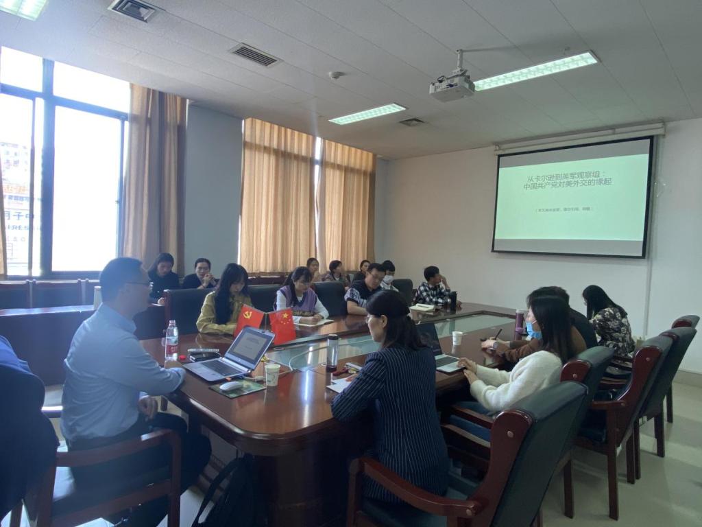 4月19日,为深入贯彻落实习近平总书记在党史学习教育动员大会上的重要讲话精神,高标准高质量推进海角视频 党史学习教育,邀请中国社会科学院近代史所研究员侯中军到海角视频 做了以“从卡尔逊到美军观察组:中国共产党对美外交的缘起”专题报告。报告会由徐莹副院长主持。部分师生参加报告会。