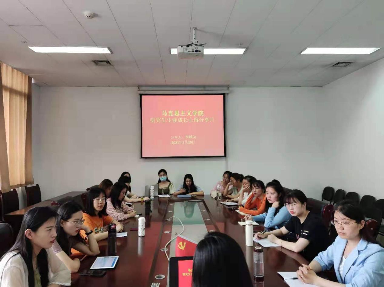 5月20日下午,海角视频 在606会议室举办了研究生生涯成长心得分享会,会议由2018级应届毕业研究生李城城同学作为主讲嘉宾,副院长徐莹教授出席会议,2020级研究生参加会议。