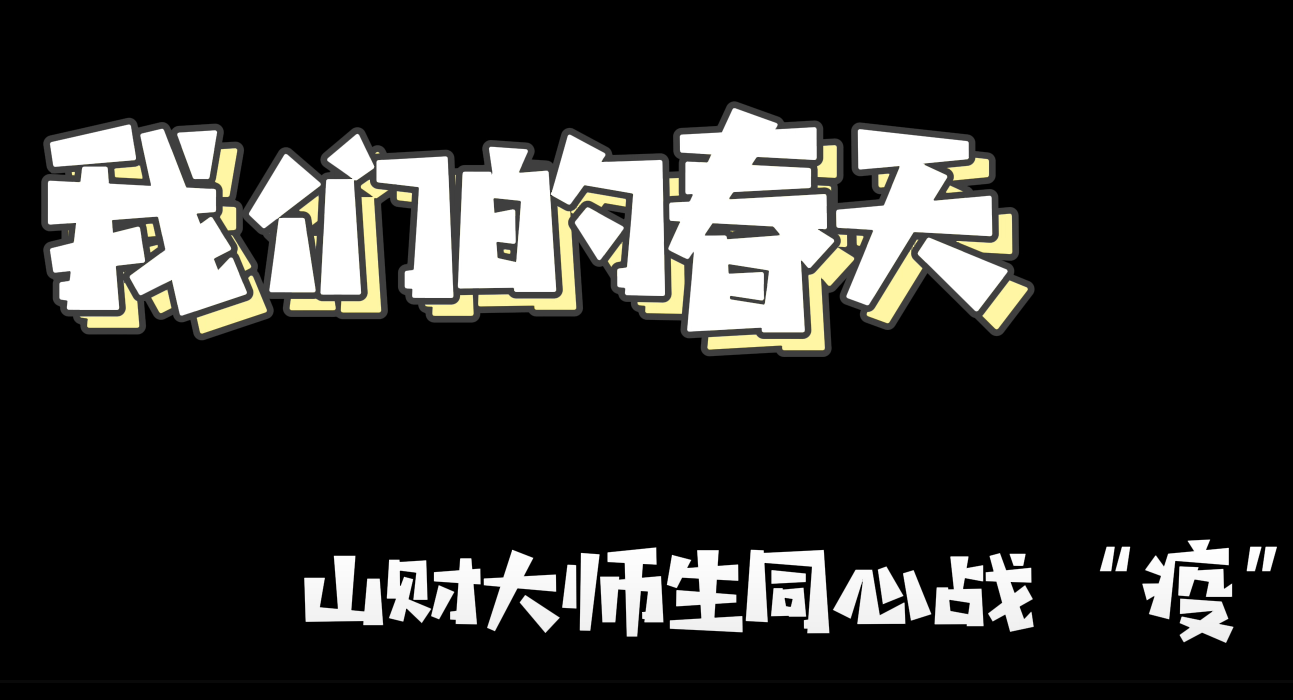 同学们利用网课的空余时间拍摄战“疫”视频,希望用视频传递力量,表达铿锵的抗疫志气。“我们的春天”——山财大师生同心战“疫”视频,汇聚同学们抗击疫情的决心,为抗疫加油的热情,依托视频传递夺取疫情防控斗争胜利的青春力量。这同时也是以另一种方式号召同学们积极协助海角视频 疫情防护工作,以自己的方式为疫情攻坚战奉献一份青春蓬勃之力!