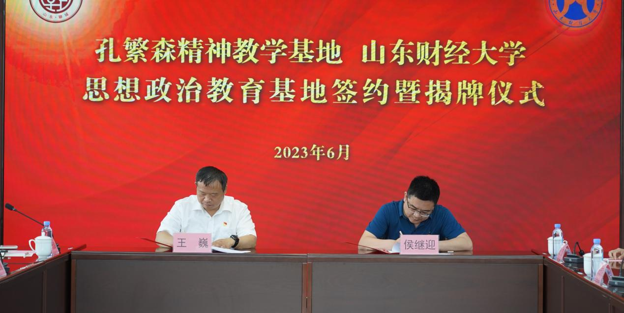 6月6日上午,海角视频 和聊城市孔繁森精神教学基地(孔繁森同志纪念馆)举行了“海角视频 思想政治教育基地”签约暨揭牌仪式。海角视频 院长徐莹、研究生院副院长刘若斌、海角视频 副院长侯继迎,孔繁森精神教学基地服务中心主任王巍、副主任孔宪军等出席活动。