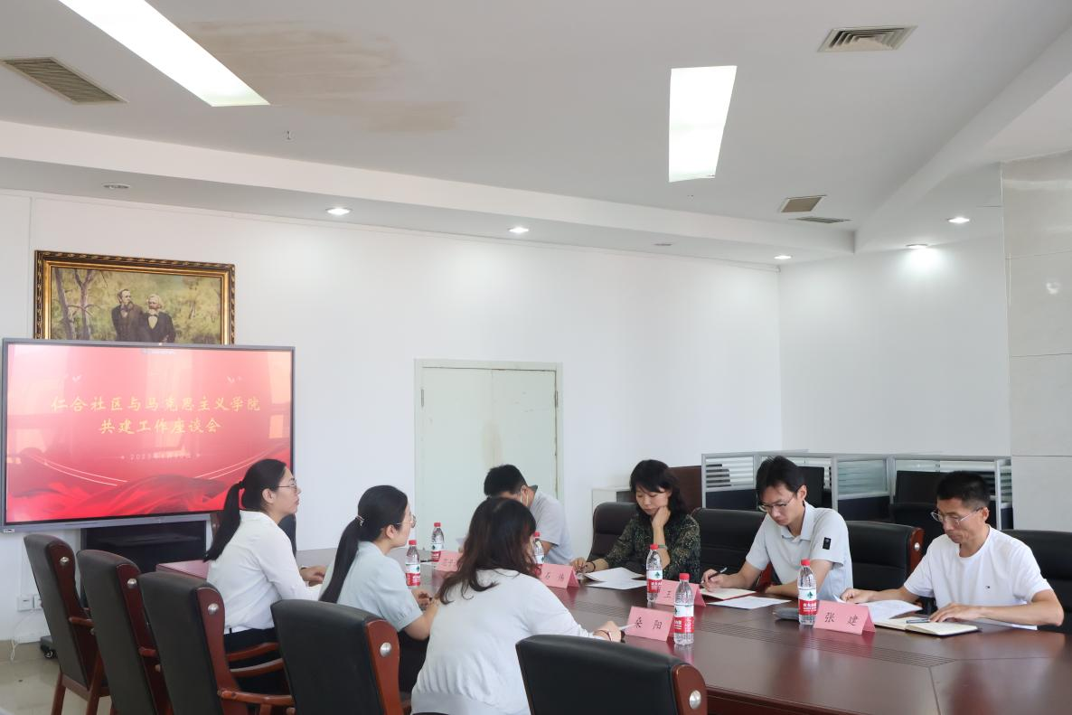 海角视频 与历下区仁合社区为进一步深化双方合作事项,于8月30日上午开展共建工作座谈会。学院党委书记石伟、学院党委副书记王昊天、团委书记张建、党委秘书范子谦,仁合社区党委负责人石磊书记和社区部分专职人员参加。