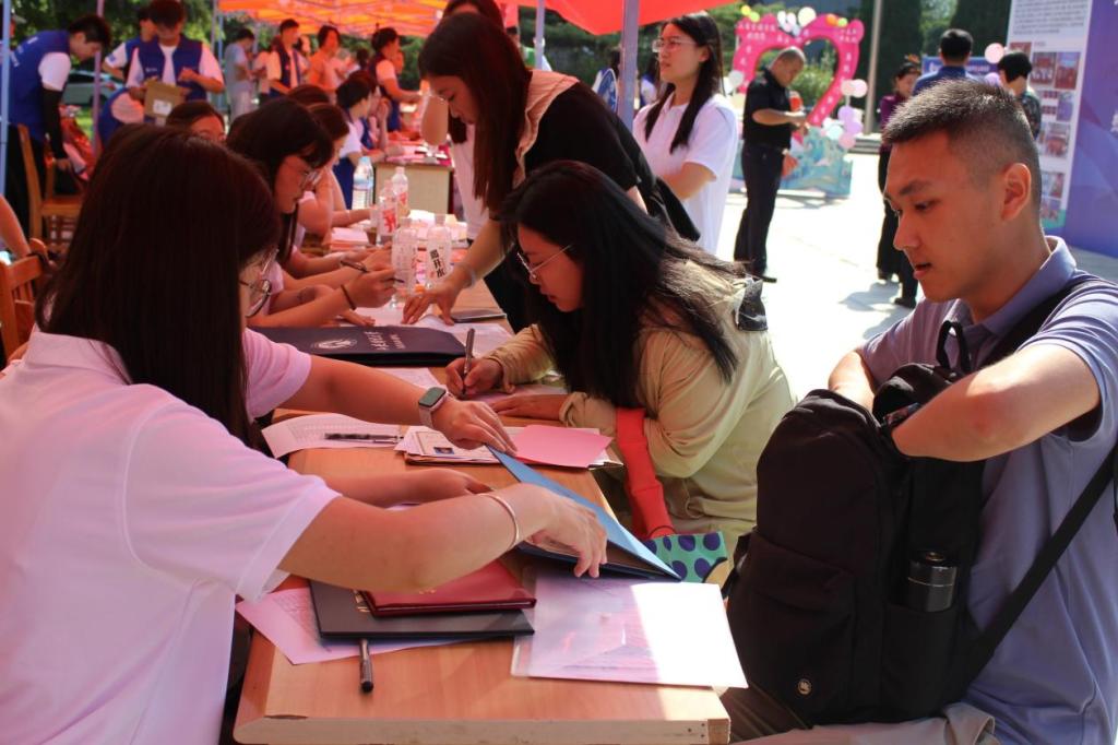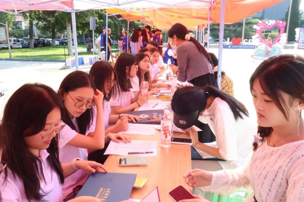 踏着清晨的第一缕阳光,10余名志愿者统一着装,提前到达迎新现场,在院团委书记张建的部署下,有序投入到紧张的场地布置工作中,以饱满的精神状态迎接新生的到来。迎新开始后,志愿者们各司其职,高效有序地协助新生完成身份确认、材料收取、物品发放、住宿办理等入学报道手续。同时,热情引导学生家长在休息区等待,为新生及陪同亲人在合影板前拍照打卡留念,做好服务工作等,让新生们在踏入校园的第一步就感受到了家的温暖和关怀。