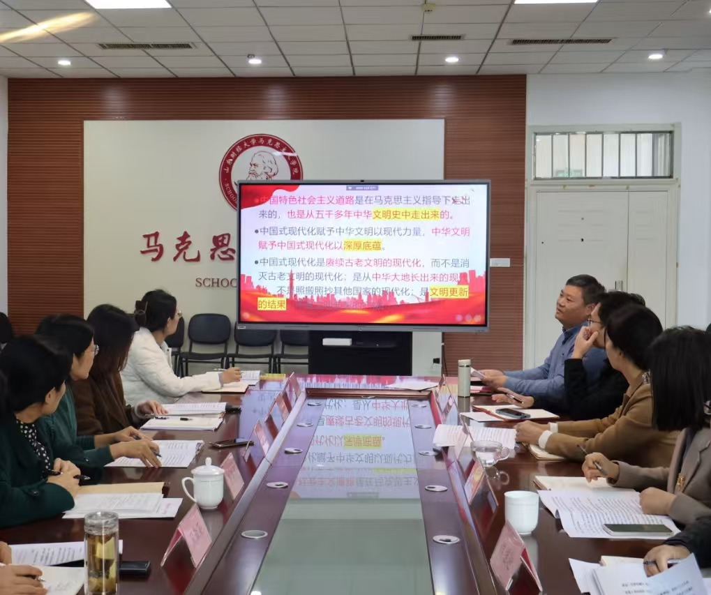 在研讨交流环节,院长徐莹表示,文化是一个国家、一个民族的灵魂。文化振兴是强国建设和民族复兴的重大任务。高校是文化传承的主要载体,当代大学生肩负着传承中华优秀传统文化的重任。作为高校思政课教师,我们需要将中华优秀传统文化的相关资源融入思政课教学,让学生在接受思想政治教育的同时,感受到中华优秀传统文化的博大精深和无穷魅力。副院长侯继迎表示,理论是实践的先导,在进一步全面深化改革中,要深刻把握“两个结合”的逻辑关系,在马克思主义指导下实现对中华优秀传统文化的创造性转化和创新性发展。蔺淑英教授认为,二十届三中全会强调了聚焦建设社会主义文化强国,坚持马克思主义在意识形态领域指导地位,彰显了在推进中国式现代化过程中经济基础和上层建筑的辩证关系。