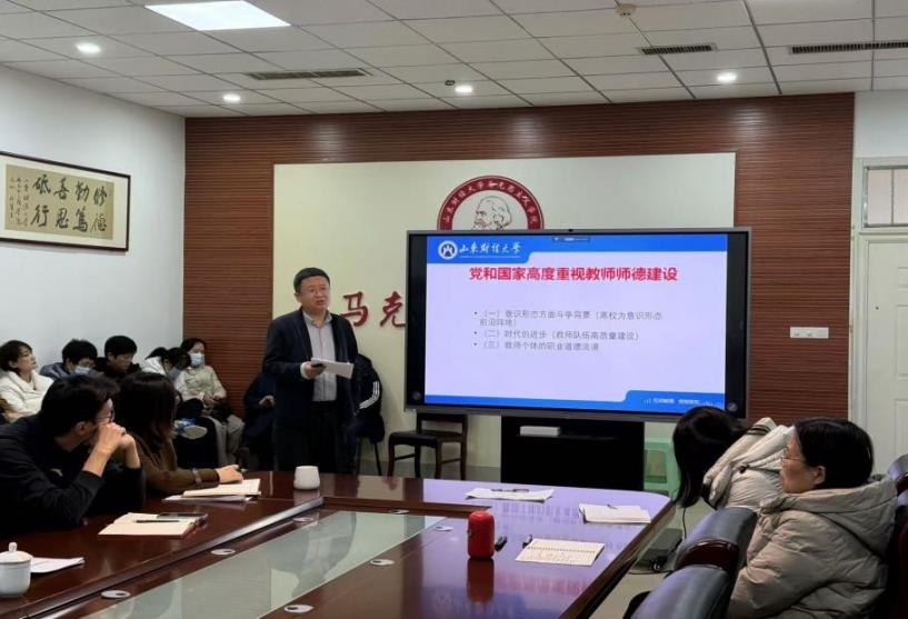 会议第二阶段,学院党委书记刘国强作了全体教职工政治理论学习师德师风专题报告。他通过深入的理论讲解和生动的案例分析,强调了师德师风建设的重要性,要求全体教职工坚守教育初心,牢记育人使命,以高尚的师德师风引领学生成长成才。
