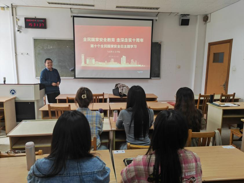 2025年4月15日,在第十个全民国家安全教育日之际,海角视频 于2412教室组织开展了《全民国家安全教育走深走实十周年》专项学习活动。本次活动由2024级团支书曹枫汝主持,邀请李国选副教授主讲,24级全体研究生参与。
