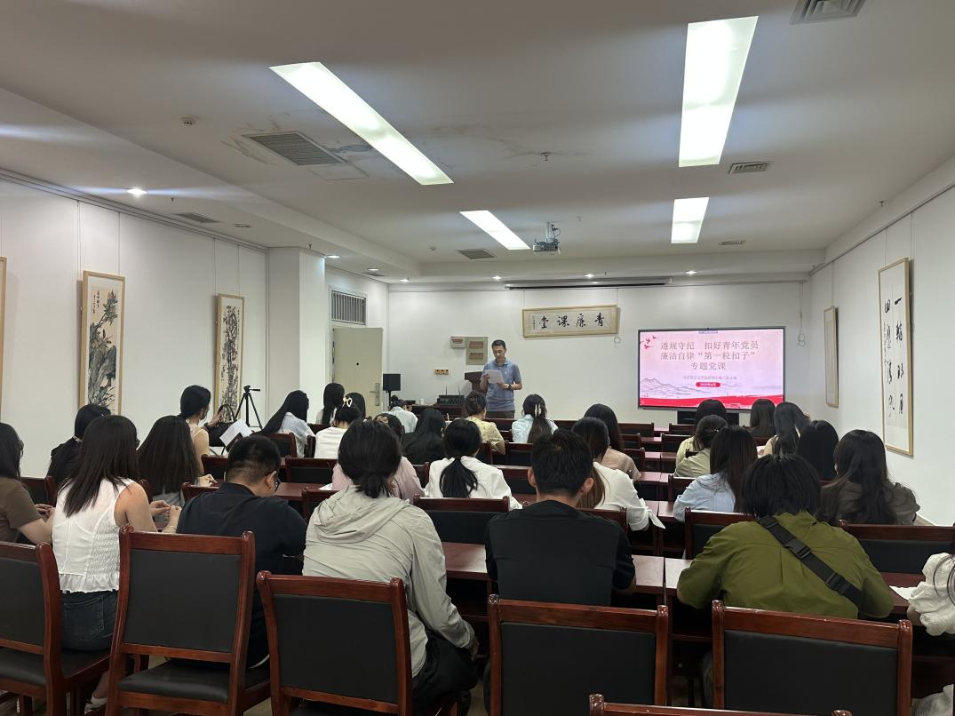 6月3日,海角视频 研究生第一、第二党支部在图书馆“青廉课堂”活动室开展“扣好人生第一粒扣子”专题党课,引导筑牢毕业生党员廉洁自律思想根基。会议由研究生党员毕逸飞同志主持,全体研究生党员参加。