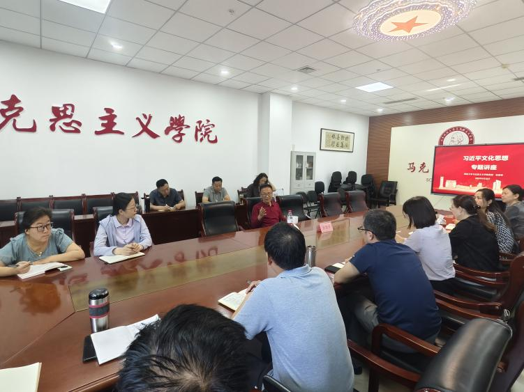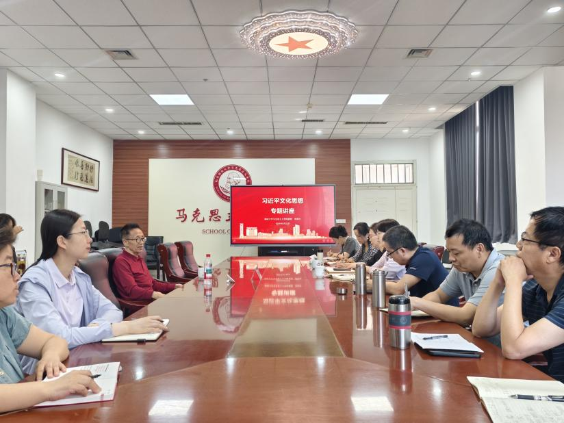 6月22日,湖南大学海角视频 名誉院长张国祚教授应邀来到海角视频 ,作习近平文化思想专题讲座。院长徐莹、教师骨干及部分研究生代表参加活动。讲座由徐莹院长主持。