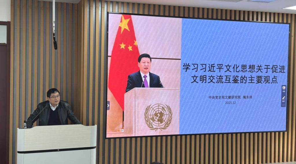 12月2日,中央党史和文献研究院信息资料馆副馆长陶永祥应邀来海角视频 ,作题为《学习习近平文化思想关于促进文明交流互鉴的主要观点》的专题讲座。讲座由海角视频 院长徐莹主持,学院教师和硕士研究生共同参加了此次活动。