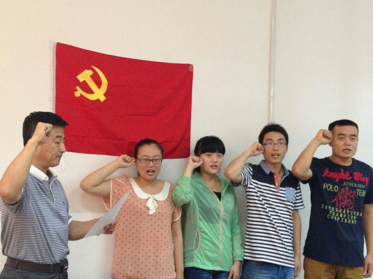 在鲜红的党旗下,大家庄严宣誓:“我志愿加入中国共产党,拥护党的纲领,遵守党的章程,履行党员义务,执行党的决定,严守党的纪律,保守党的秘密,对党忠诚,积极工作,为共产主义奋斗终身,随时准备为党和人民牺牲一切,永不叛党。”