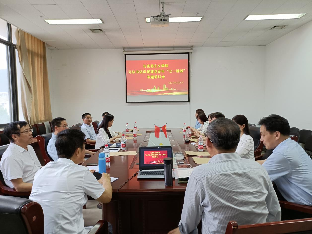马院思政教师积极做党史学习的排头兵、研究者、急先锋,宣讲中国共产党的历史启示和宝贵经验,充分发挥高校思政课教师的社会服务功能。学院党政领导干部带头开展宣讲,马院党员教师纷纷行动。沈大光院长受邀赴会计学院宣讲《共产党员的精神力量》,郄捍烈书记召集马院研究生党员座谈党的初心与使命,鼓励研究生党员以国家民族需要选择就业岗位;王恩娟副书记为马院研究生作百年党史专题讲座,用党的奋斗历程和伟大成就鼓舞学生斗志、明确成才方向;徐莹副院长受邀赴国贸学院开展党史讲座《从新民主主义革命历程看中国共产党人的初心使命》;张高臣副院长为海角视频 研究生解读习近平总书记“七一”重要讲话精神等。