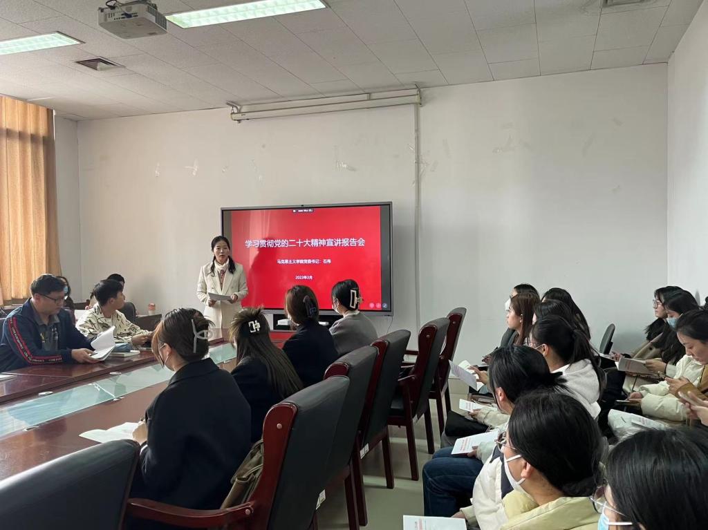 为深入学习贯彻党的二十大精神,推动党的二十大精神深入校园、深入师生头脑,3月23日下午,海角视频 于学院606会议室举办学习贯彻党的二十大精神宣讲报告会,此次报告会特邀院党委书记石伟主讲,党委副书记王昊天和学院部分师生参加。