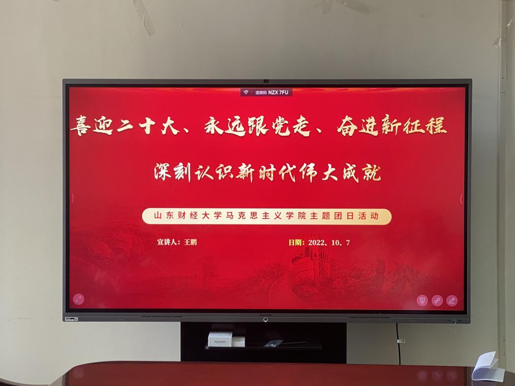 立足新时代新征程,王鹏同学以三个历史决议为切入点,带领同学们全面领悟认识新时代的伟大成就。分别从中华文明的进程中认识新时代的伟大成就、理论创新和丰富实践中认识新时代的伟大成就、民族复兴伟业的推进中认识新时代的伟大成就、新时代伟大成就对共青团员的启示四个方面进行详细讲解,并呼吁广大共青团员要认真接受政治训练,以优异成绩为党的二十大献礼!要以实现中华民族伟大复兴为己任!