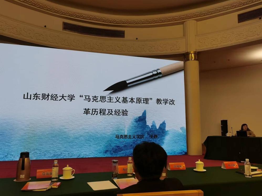 作为山东省高校哲学教学研究会会员单位,海角视频 “马克思主义基本原理”教研室蔺淑英、侯继迎、王静、田洪星四名教师参加会议,青年教师王静博士受邀进行主题发言。