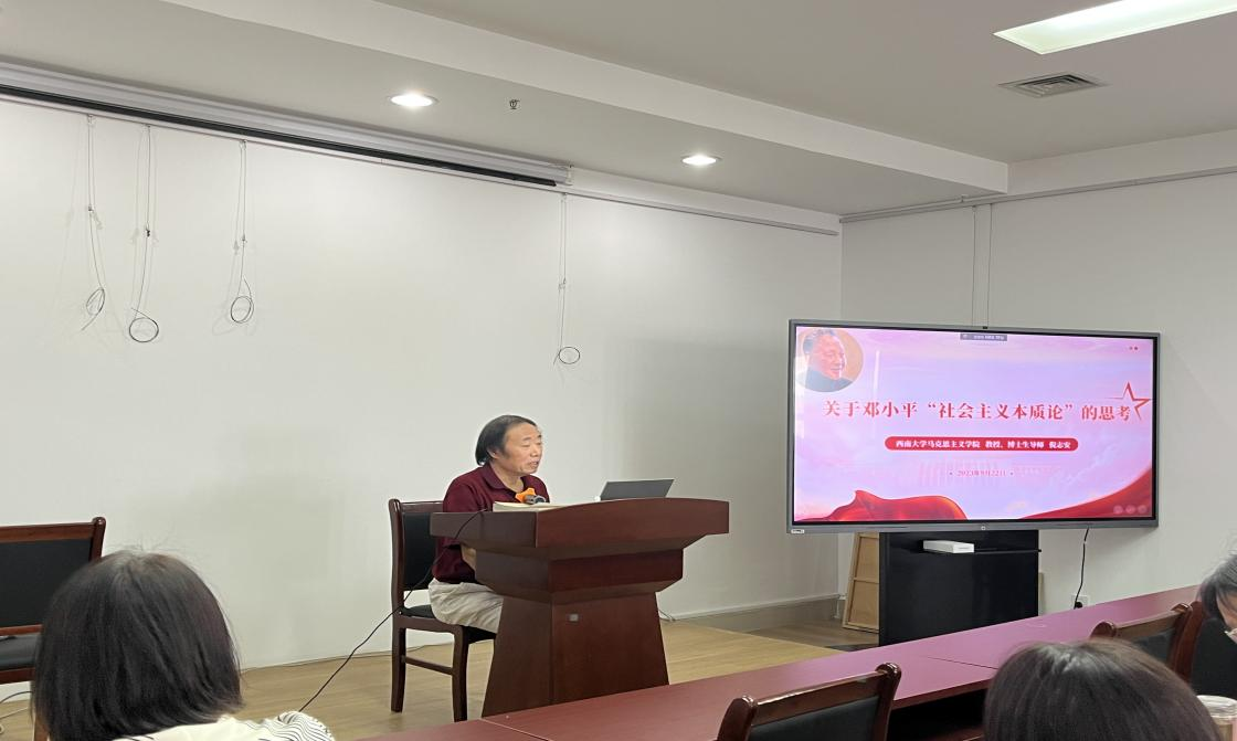 9月22日下午,西南大学海角视频 教授、博士生导师倪志安应邀来海角视频 做题为《关于邓小平“社会主义本质论”的思考》的学术讲座。此次讲座由副院长侯继迎主持,学院部分师生参加。