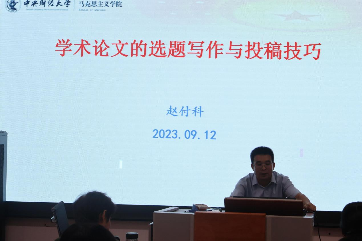 9月12日下午,中央财经大学海角视频 教授、博士生导师、《高校马克思主义理论教育研究》杂志副主编赵付科应海角视频 邀请,在图书馆501室做题为《学术论文的选题写作与投稿技巧》的专题讲座。讲座由院长徐莹主持,学院部分师生聆听了讲座。