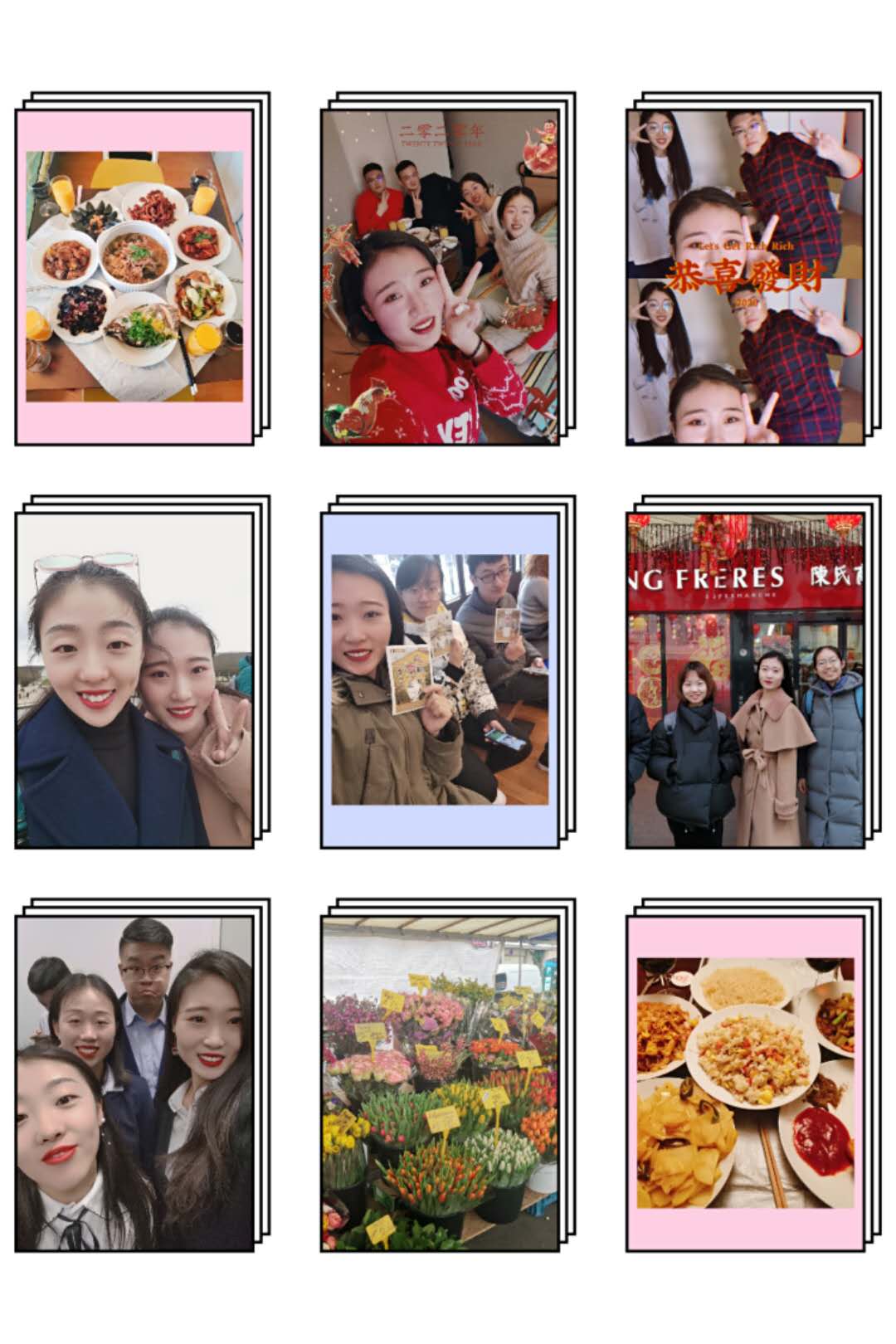 离开了家、离开了祖国,我们并不孤单,90天的记忆里,30位访学团成员给彼此留下了难忘的记忆。从出发前的“陌生人”到现在的“老铁”,我们收获的不只是知识、眼界,还有更重要的友谊。我的舍友是来自金融学院的王文文,第一次见到她就觉得莫名投缘,接触后发现我们两人在很多方面很相像,活泼开朗的性格,爱收拾整理房间的习惯,重要节日一定要创造仪式感……还有许多互补的地方,我喜欢做饭,文文更愿意刷碗。还有保险学院的天津男孩“老佟”,煎饼果子、红烧肉都是他的拿手菜,大年三十的那天晚上,我们和国贸学院的庄园一起包饺子,和外语学院的艳梅、延姣共品红酒。第一次过年不在家人身边,但因为有这些朋友,也充满了幸福感。同学们的厨艺在这三个月得到了很大的提升,回家后,也能让父母家人尝尝自己的手艺了。