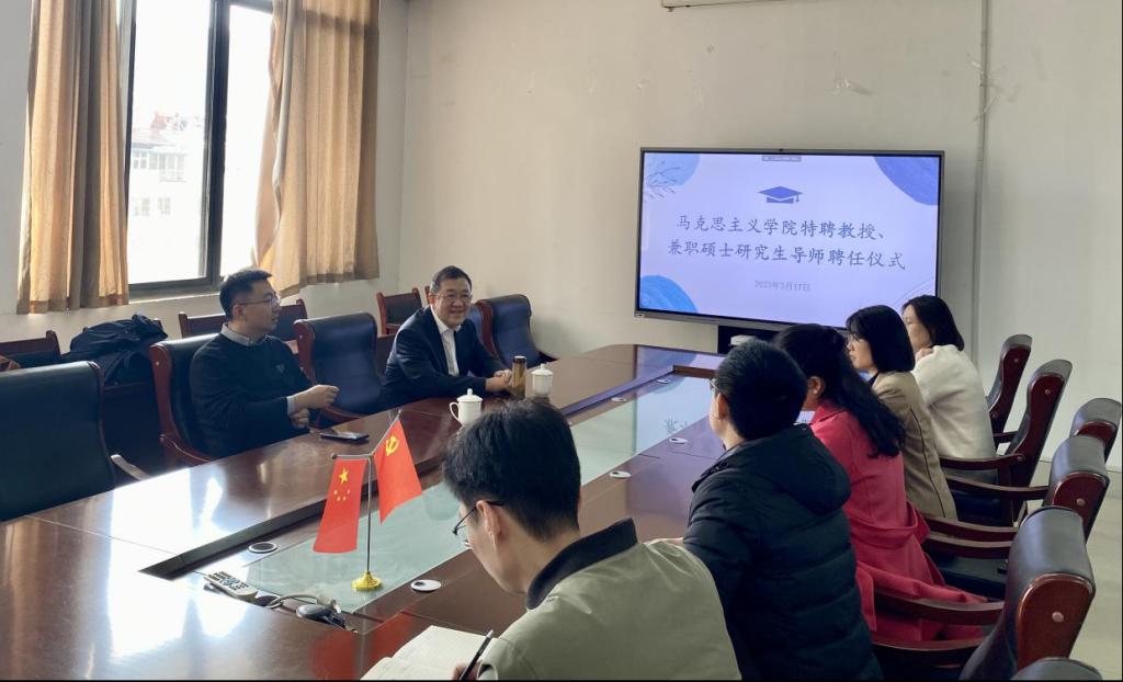 3月17日下午,马克思主义学院特聘教授、兼职硕士研究生导师聘任仪式在学院606会议室举行。学校学科建设办公室主任、研究生院副院长涂罡、学院院长徐莹、学院党委书记石伟、党委副书记王昊天、副院长侯继迎、副院长王敏出席并参加仪式。