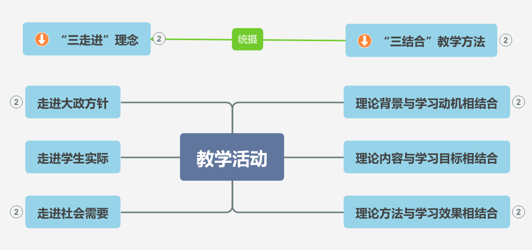 四、课程特色初步显现。《习近平新时代中国特色社会主义思想概论》是系统阐释习近平新时代中国特色社会主义思想的高校思政必修课。与其它几门思政课相比较,该课程现实性、政策性更加突出,但是作为思政课又不同于政策宣讲,要更加体现讲授内容的知识性、理论性、体系化等。结合经济类本科院校实际情况,课程团队经过不断探索,深入思考,逐步明确要秉持“走进大政方针”“走进学生实际”“走进社会需要”的“三走进”理念,努力打造“理论背景与学习动机相结合”“理论内容与学习目标相结合”“理论方法与学习效果相结合”的“三结合”教学特色,不断推动教学目标的达成。