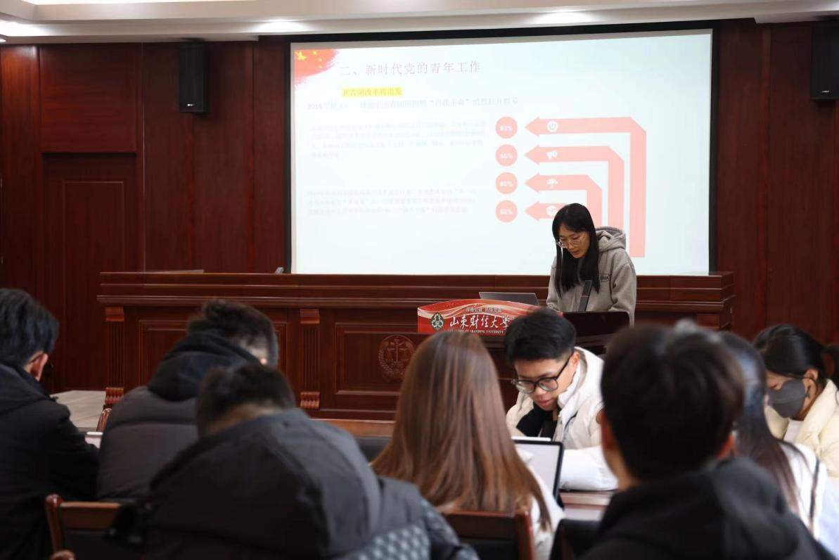 最后,各小组代表根据阅读篇目,结合个人生活实际、学院特色活动、社会实践经历、志愿服务活动、团员主题教育等主题进行分享。海角视频 的宋旭衡同学从青年习近平矢志不渝的理想追求和爱国为民的家国情怀出发,分享了学习《习近平的知青岁月》的感悟。来自管理科学与工程学院和法学院的同学也踊跃登台,围绕《青年运动的方向》《论党的青年工作》进行交流分享。